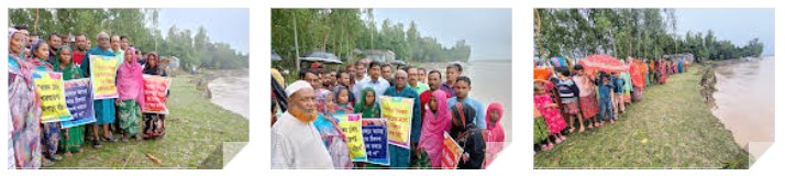 প্রতিকূল আবহাওয়া ও বৃষ্টির মধ্যেও খাড়ুয়ারপাড় সবুজপাড়া নদীতীরবর্তী এলাকার প্রায় পাঁচ শতাধিক নদীভাঙনকবলিত মানুষ মানববন্ধনে অংশগ্রহণ করেন।