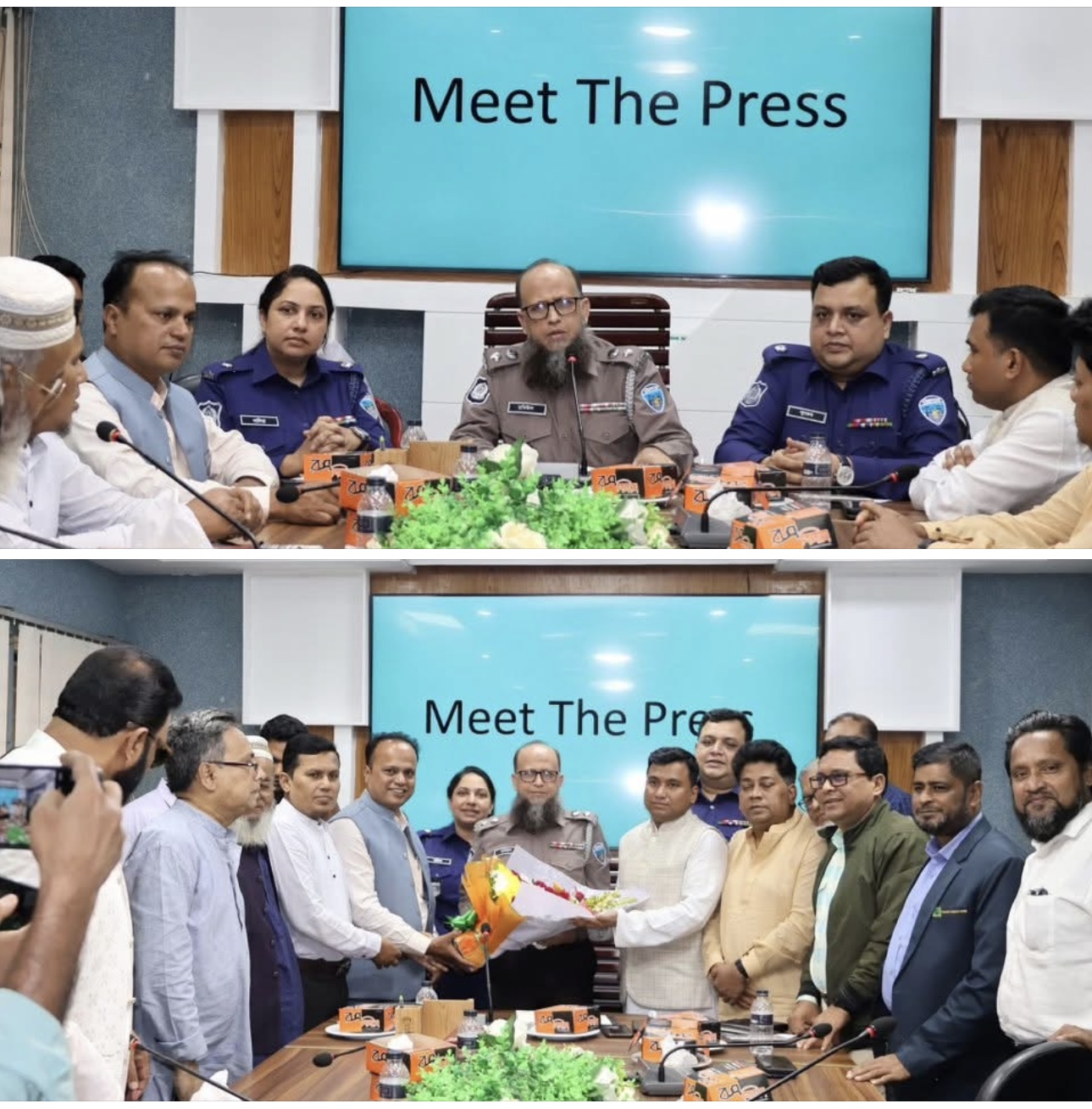 এসময় জনাব নাদিরা নূর, অতিরিক্ত পুলিশ সুপার (প্রশাসন ও অর্থ), জনাব মোঃ লুৎফর রহমান, অতিরিক্ত পুলিশ সুপার (ক্রাইম অ্যান্ড অপস্), চাঁদপুর প্রেসক্লাবের নেতৃবৃন্দ, সিনিয়র সাংবাদিকবৃন্দ এবং জেলা পুলিশের উর্ধ্বতন কর্মকর্তাবৃন্দ উপস্থিত ছিলেন।