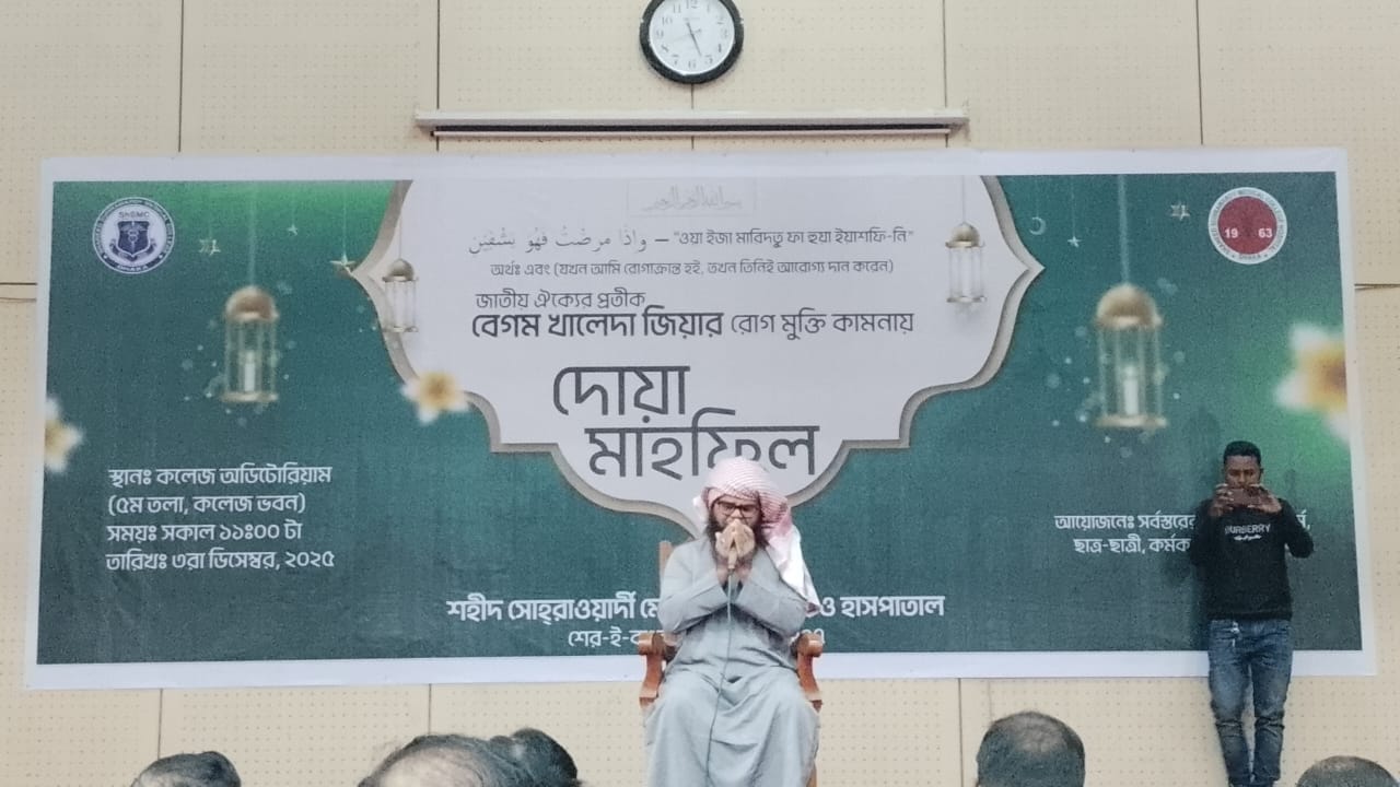 মাহফিলে বিশেষ মোনাজাত পরিচালনা করেন মিরপুর কেন্দ্রীয় মসজিদের ইমাম ও খতিব মাওলানা বাতেন। দোয়া মাহফিলে সুরা পাঠ ও দুরুদ শরিফের মাধ্যমে খালেদা জিয়ার দীর্ঘায়ু ও পূর্ণ সুস্থতা কামনা করা হয়।