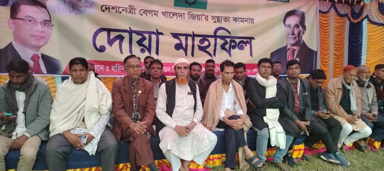 নিজস্ব প্রতিবেদক, কুষ্টিয়া : বিএনপি চেয়ারপারসন ও সাবেক তিনবারের প্রধানমন্ত্রী দেশনেত্রী বেগম খালেদা জিয়ার সুস্থতা ও দীর্ঘায়ু কামনায় কুষ্টিয়া সদর উপজেলার হরিনারায়ণপুর মাধ্যমিক বালিকা বিদ্যালয় মাঠে অনুষ্ঠিত দোয়া মাহফিল হাজারো নেতাকর্মীর উপস্থিতিতে জনসমুদ্রে পরিণত হয়। অনুষ্ঠানটি আয়োজন করে হরিনারায়ণপুর ইউনিয়ন বিএনপি ও অঙ্গসংগঠন।