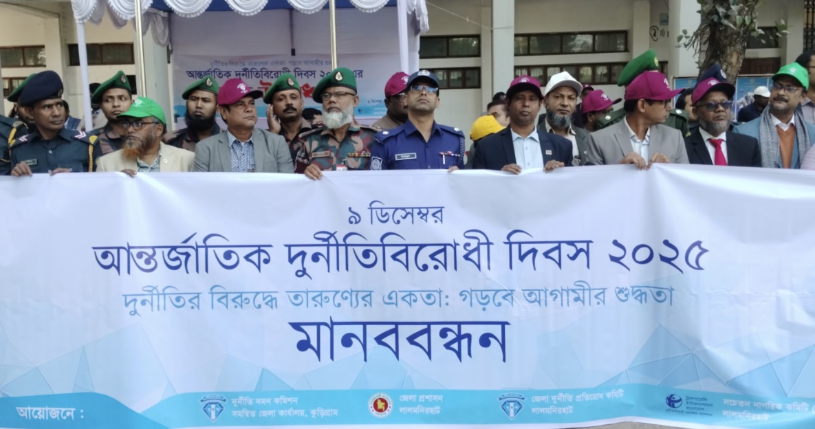 লালমনিরহাটে জেলা প্রশাসন, দুর্নীতি দমন কমিশন, জেলা দুর্নীতি প্রতিরোধ কমিটি , সচেতন নাগরিক কমিটি ও টিআইবির যৌথ আয়োজনে অনুষ্ঠিত এ মানববন্ধন ও আলোচনা সভায় প্রধান অতিথি ছিলেন জেলা প্রশাসক এইচ এম রকিব হায়দার।