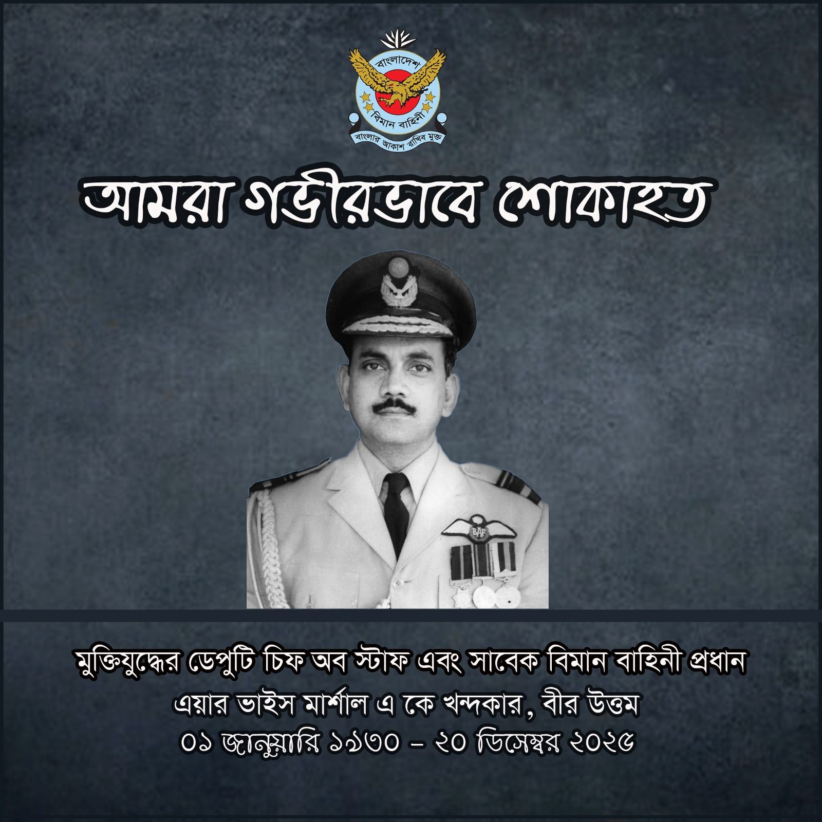 মহান স্বাধীনতা যুদ্ধের বীর মুক্তিযোদ্ধা, মুক্তিবাহিনীর ডেপুটি চিফ অব স্টাফ, জাতির গর্বিত কৃতী সন্তান এবং সাবেক বিমান বাহিনী প্রধান এয়ার ভাইস মার্শাল আব্দুল করিম খন্দকার, .... বিস্তারিত