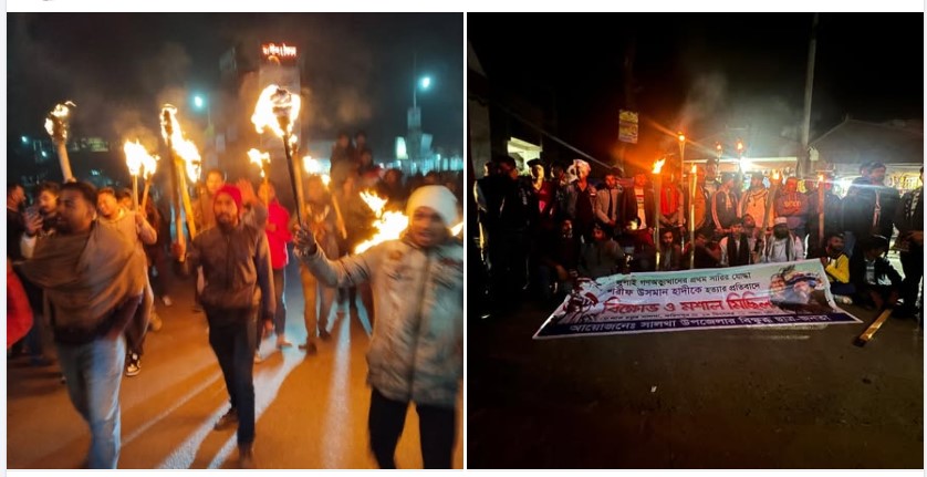 এ সময় বিক্ষুব্ধ ছাত্র-জনতা প্রায় আধা ঘণ্টা চৌরাস্তা মোড়ে সড়ক অবরোধ করে রাখেন।মশাল মিছিল ও অবস্থান কর্মসূচিতে অংশগ্রহণকারীরা শরীফ ওসমান হাদির হত্যাকাণ্ডের তীব্র নিন্দা জানিয়ে বিভিন্ন স্লোগান দেন। তারা দ্রুত অপরাধীদের শনাক্ত করে আইনের আওতায় আনা ও দৃষ্টান্তমূলক শাস্তির দাবি জানান।