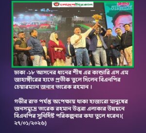 গভীর রাত পর্যন্ত অপেক্ষায় থাকা হাজারো মানুষের জনসমুদ্রে তারেক রহমান উত্তরা এলাকার উন্নয়নে বিএনপির সুনির্দিষ্ট পরিকল্পনার কথা তুলে ধরেন।