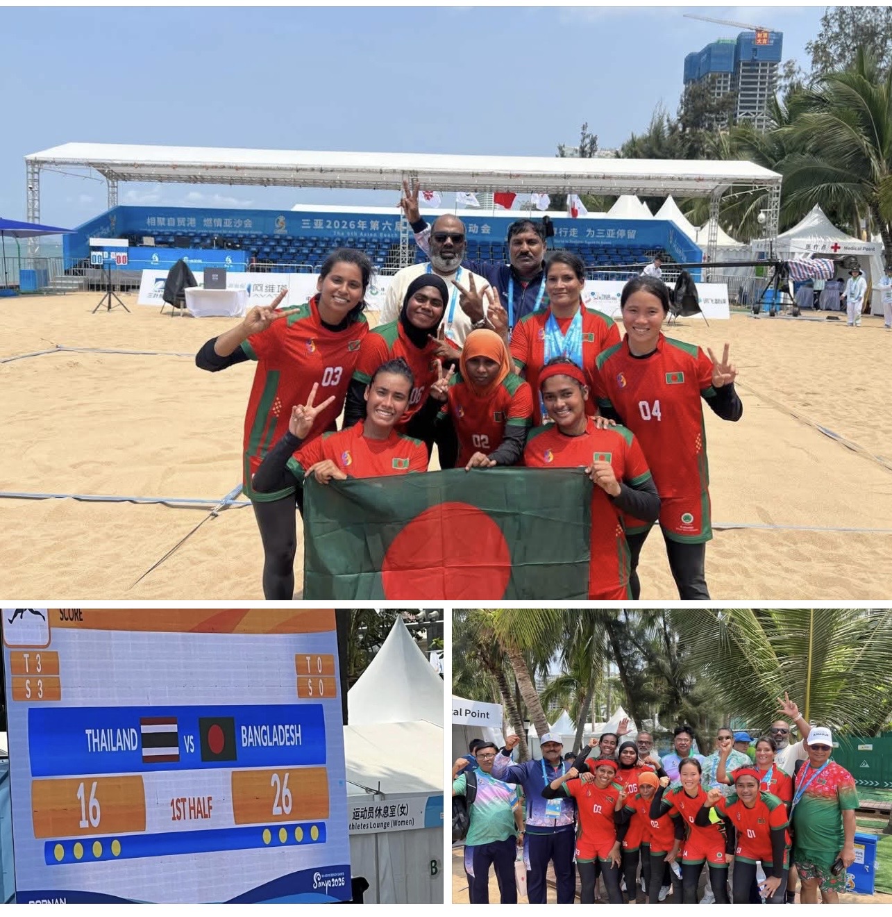 এশিয়ান বিচ কাবাডি ২০২৬ এ থাইল্যান্ডের বিপক্ষে ৫১-৩৪ পয়েন্টের দুর্দান্ত জয়ের জন্য বাংলাদেশ নারী কাবাডি দলকে প্রাণঢালা অভিনন্দন জানিয়েছেন যুব ও ক্রীড়া প্রতিমন্ত্রী মোঃ আমিনুল হক। এক অভিনন্দন বার্তায় তিনি বলেছেন, ১৭ পয়েন্টের এই ব্যবধানে জয় শুধু একটি ম্যাচের ফলাফল নয়, বরং এটি মেয়েদের অদম্য সাহস, কঠোর পরিশ্রম ও লড়াকু মানসিকতার প্রতিচ্ছবি। তিনি আরও উল্লেখ করেন, বালুচরে খেলোয়াড়রা যেভাবে লাল-সবুজের পতাকা উঁচিয়ে ধরেছেন, তা গোটা জাতিকে গর্বিত করেছে।