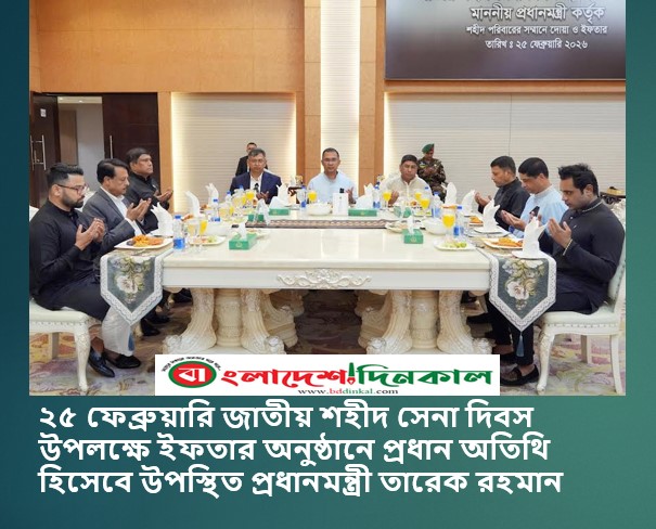 আজ শনিবার | ১লা ফাল্গুন, ১৪৩২ বঙ্গাব্দ | ১৪ই ফেব্রুয়ারি, ২০২৬ খ্রিস্টাব্দ |২৬শে শাবান, ১৪৪৭ হিজরি | সকাল ৭:১৭